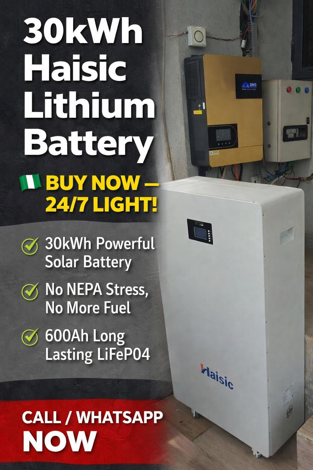 Yes, Finally, Constant Light in Nigeria β Meet the 30kWh Haisic Battery is currently available from Odinaka Solar Tech in Nigeria.
